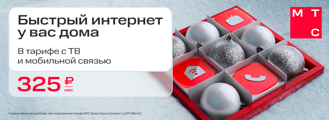 Редкая акция: 50% на весь год. Подключайте МТС Дома Супер или Дома Отлично и пользуйтесь домашним интернетом, связью и сервисами вдвое дешевле 12 месяцев подряд